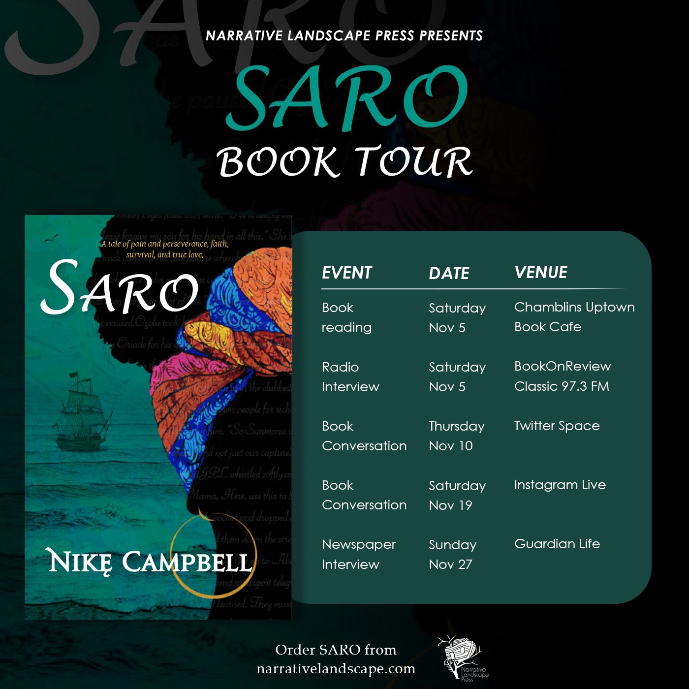 SARO Book Tour by Narrative Landscape Press